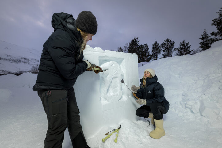 Tromsø Ice Domes is a unique Snow Park in our Wilderness Camp which is located 95km away from Tromsø. Every winter season, the Snow Park is built from scratch and an international crew of professional snow carvers is flown in to transform blocks of ice and snow into incredible Arctic Art.