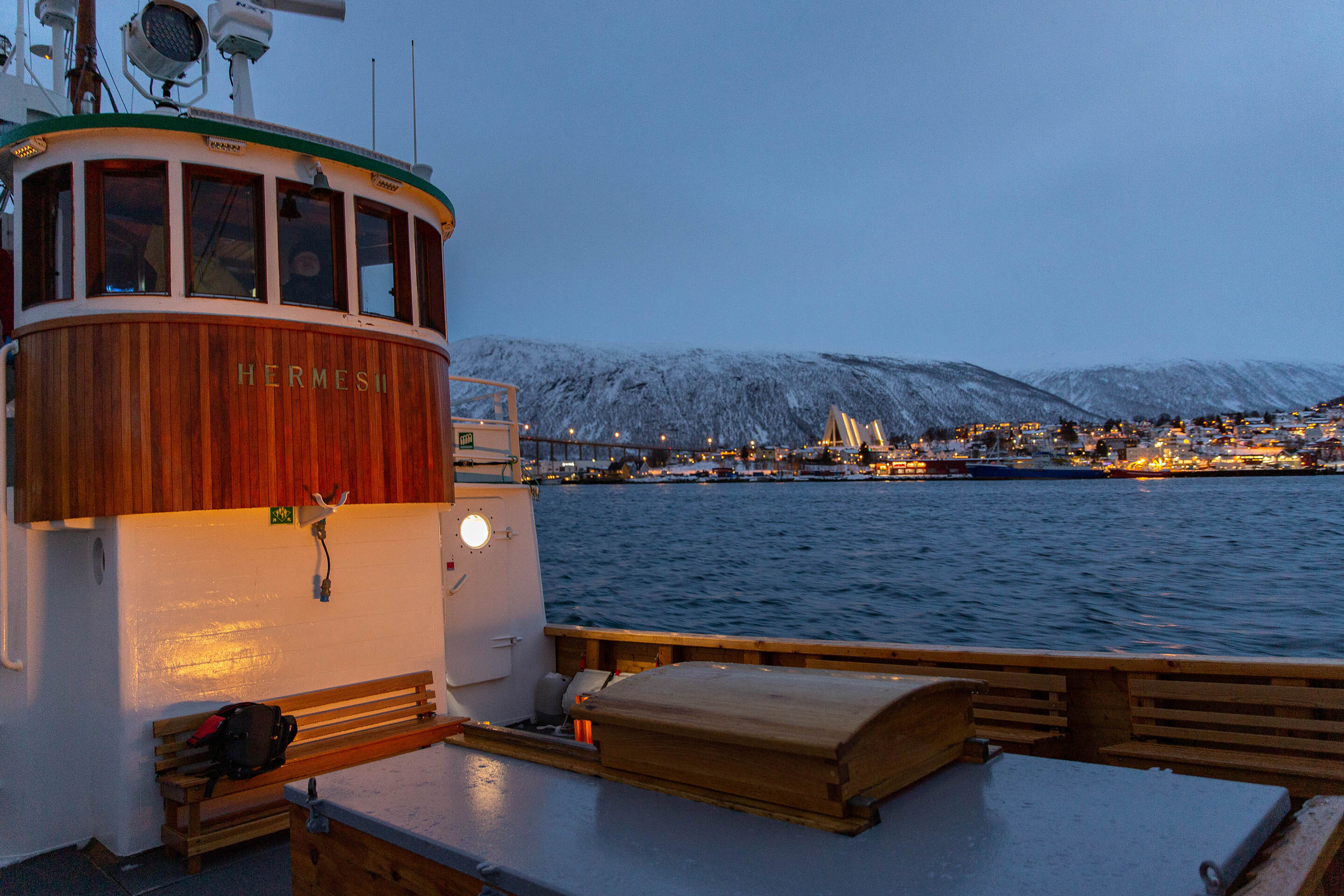 Step into the world of total relaxation on board our venerable wooden boat, just minutes away from the heart of Tromsø. The Hermes II seamlessly blends the charm of a bygone era with modern amenities, including a heated lounge, a well-stocked bar, and comfortable below-deck facilities.