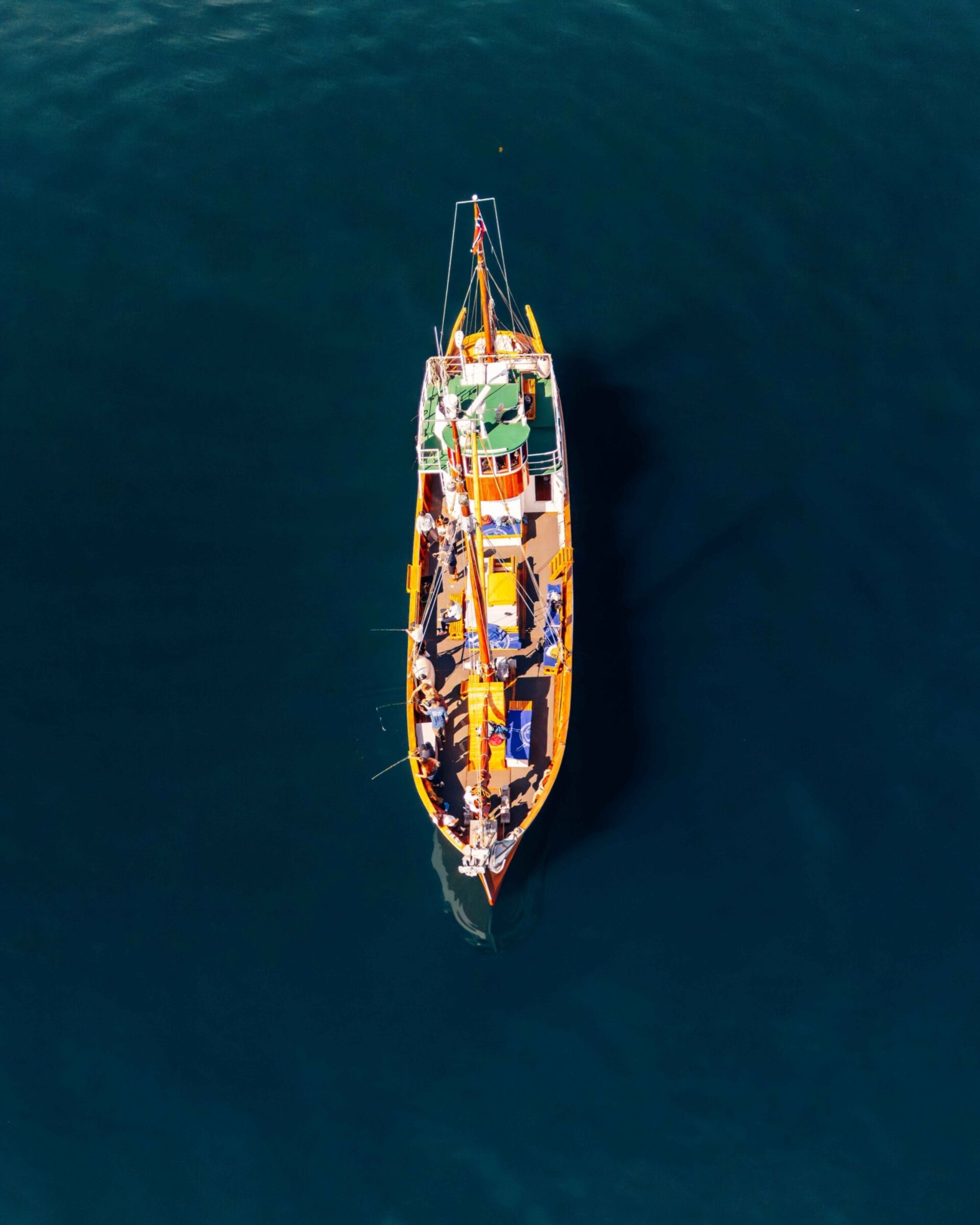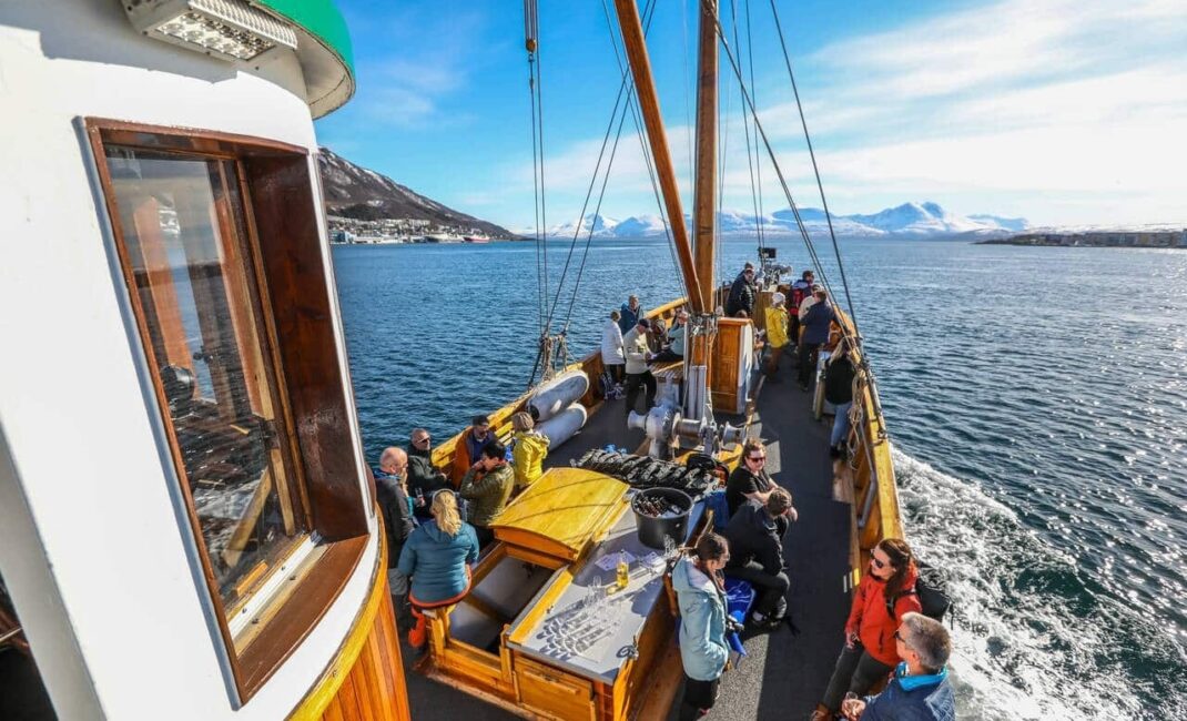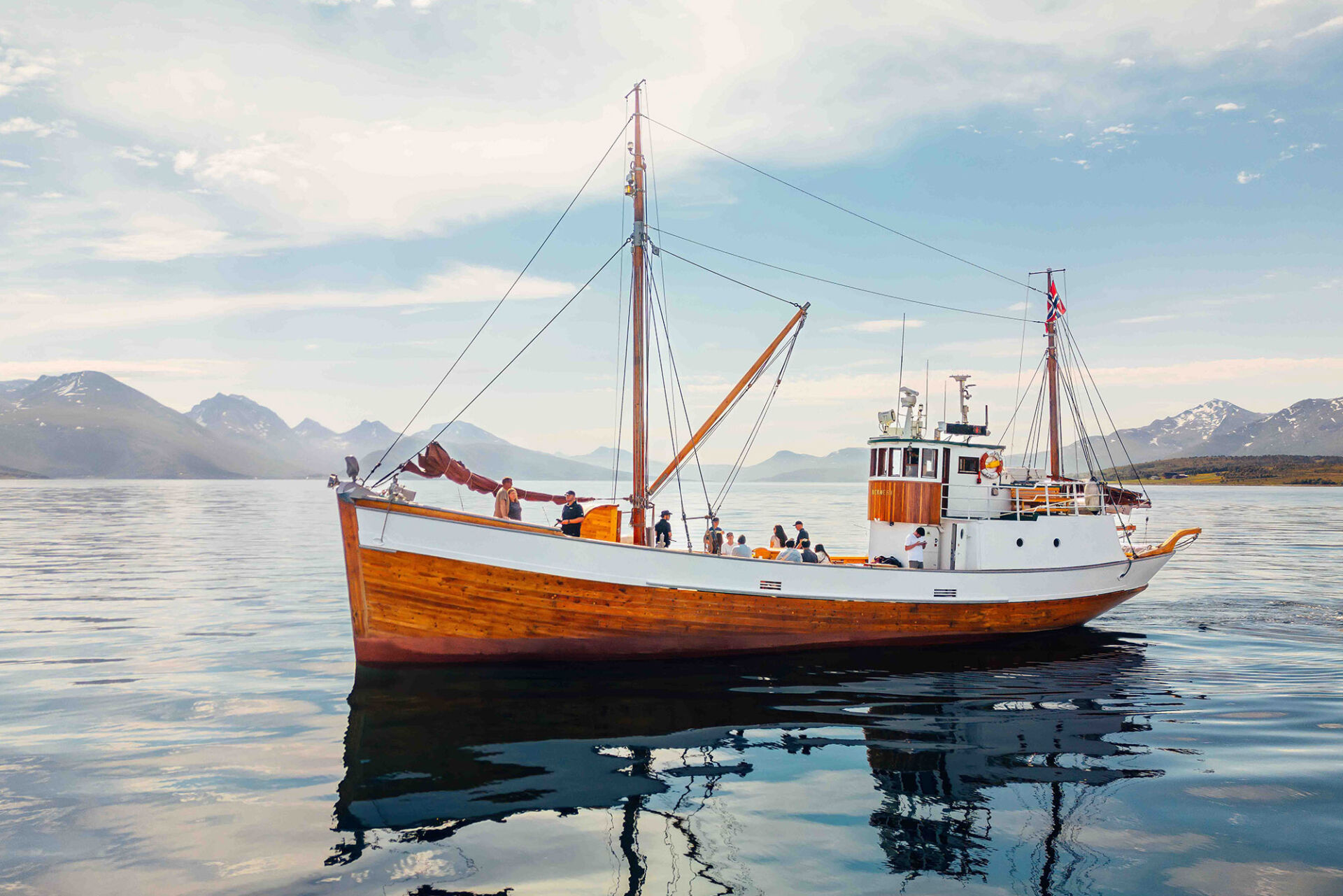 Step aboard Hermes II, a beautifully restored wooden boat built in 1917. Our crew will welcome you warmly and help you get comfortable before we leave the harbour in Tromsø.