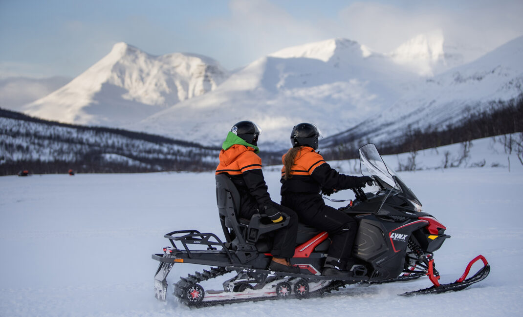 The tour will lead you into the breathtaking Finndalen valley, where you’ll tackle an adventurous snowmobile route that features varied terrain, frozen rivers, and rolling mountain landscapes. You will share a snowmobile with a partner, switching between driver and passenger during a short break halfway through.
