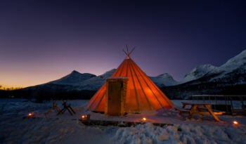 Embark on an exciting journey departing from the city center of Tromsø by bus. After a 95-minute relaxing journey through Arctic mountains and fjords, you will enter the remote wilderness surrounding Tamokhuset.