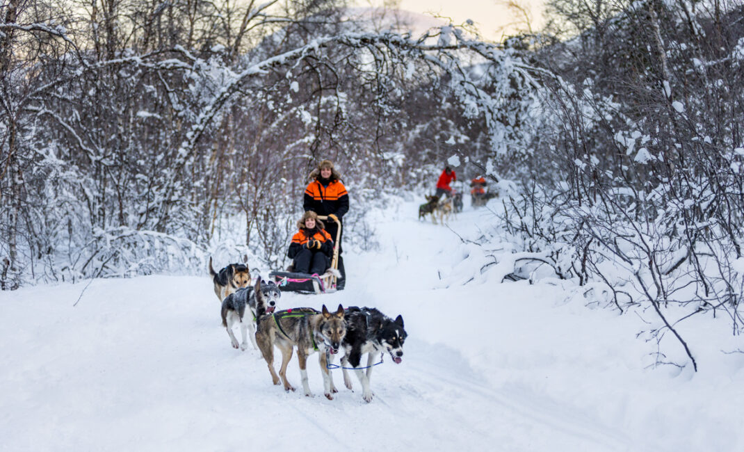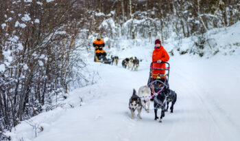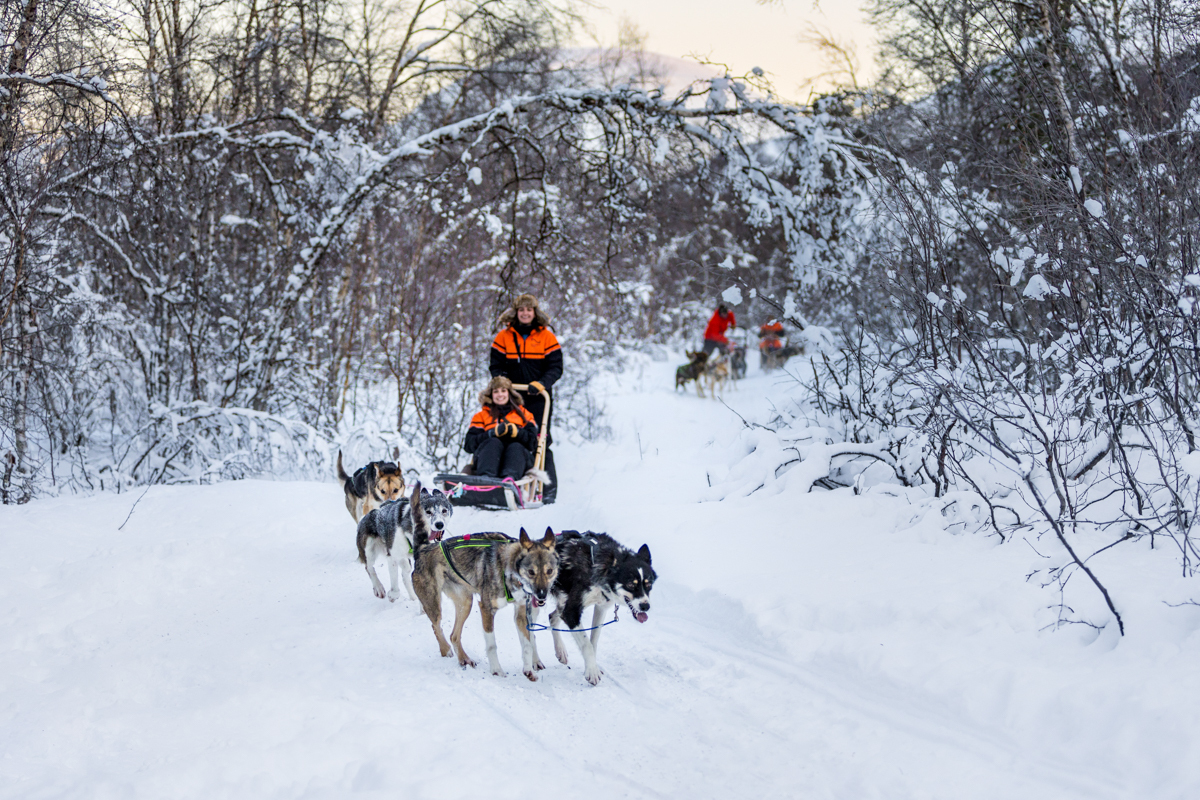 This dog sledding ride has been carefully created as an activity accessible for most of you. Although you will need basic physical fitness walking around on snowy terrain and assisting the dogs on pushing the sled, the terrain is quite flat and open making the sledding comfortable and easy.