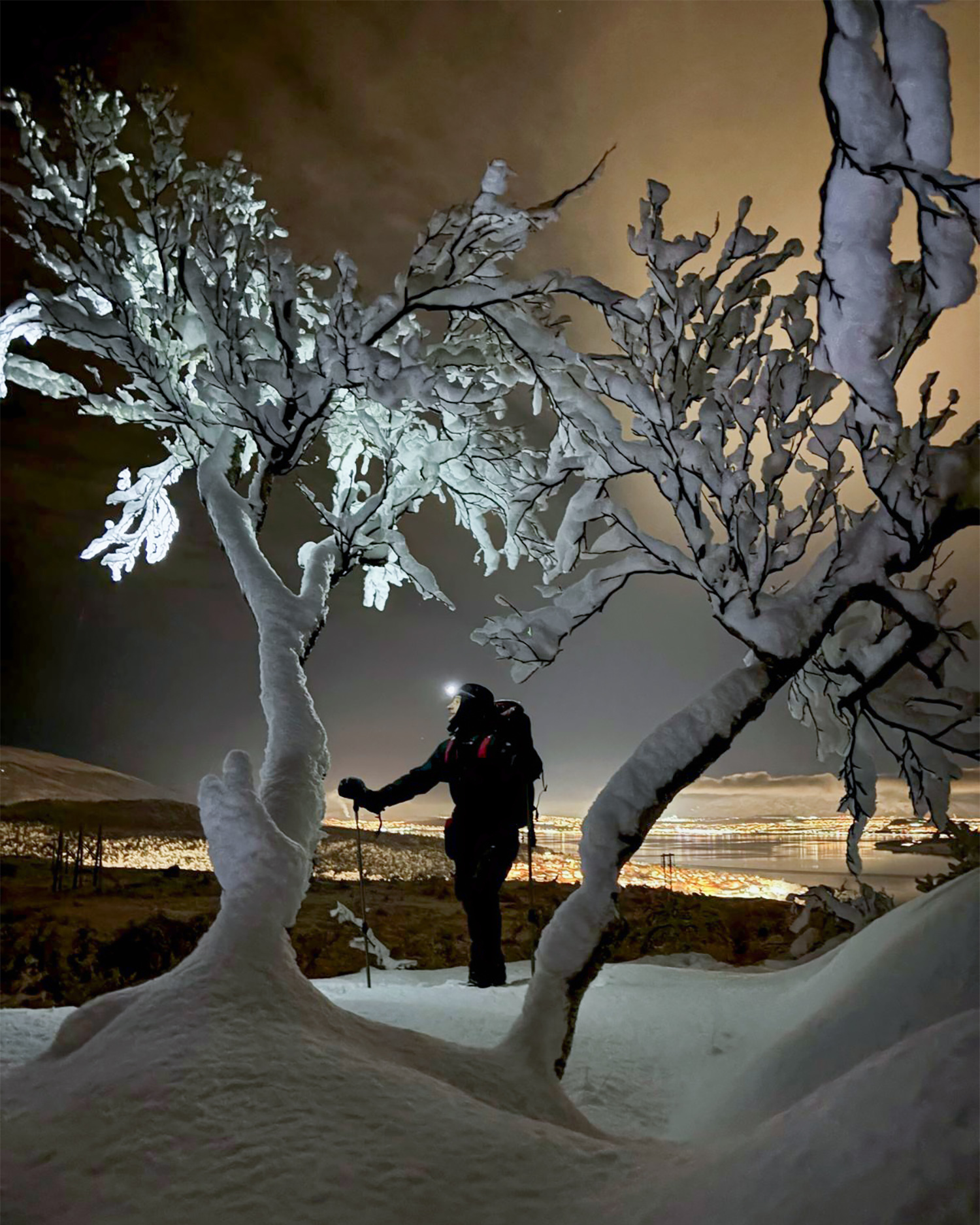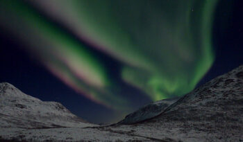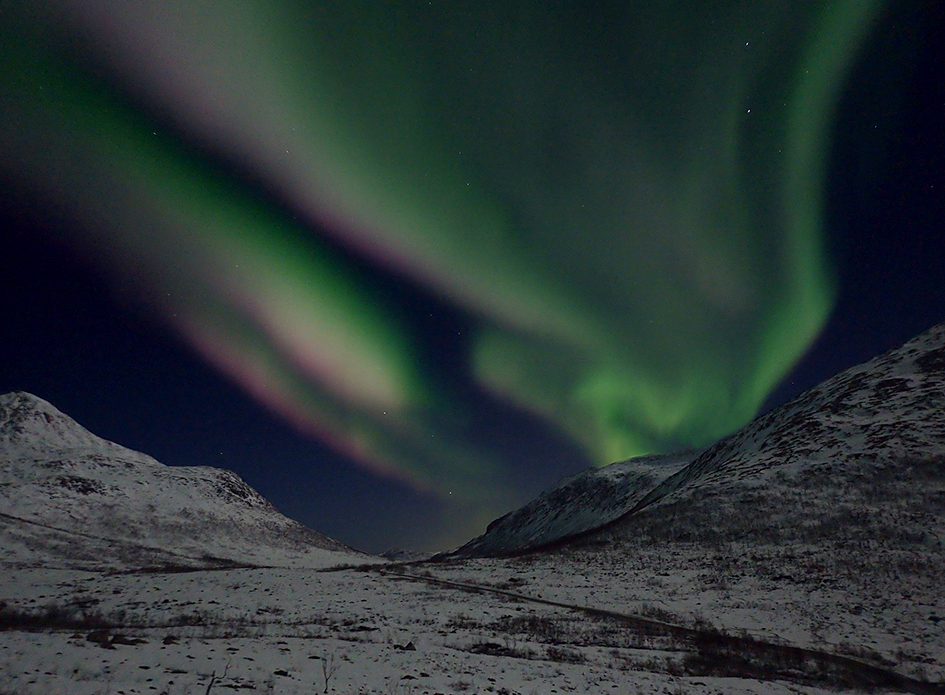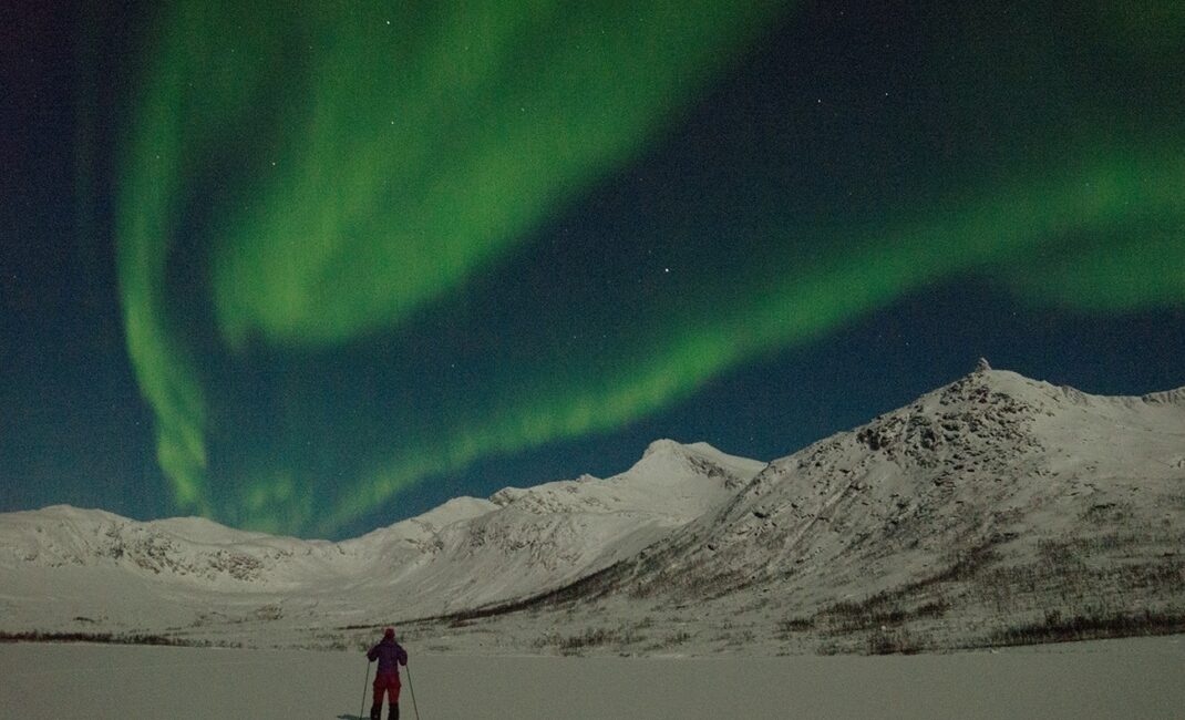 Your evening adventure begins with a comfortable transfer from Tromsø city centre to a location on the island of Kvaløya only a short and scenic drive away. When you arrive at the starting point, your guide will welcome you and provide snowshoes, poles, and a headlamp to prepare you for the night’s Arctic experience. Snowshoeing is easy to learn, and your experienced local guide will ensure a safe and enjoyable hike.