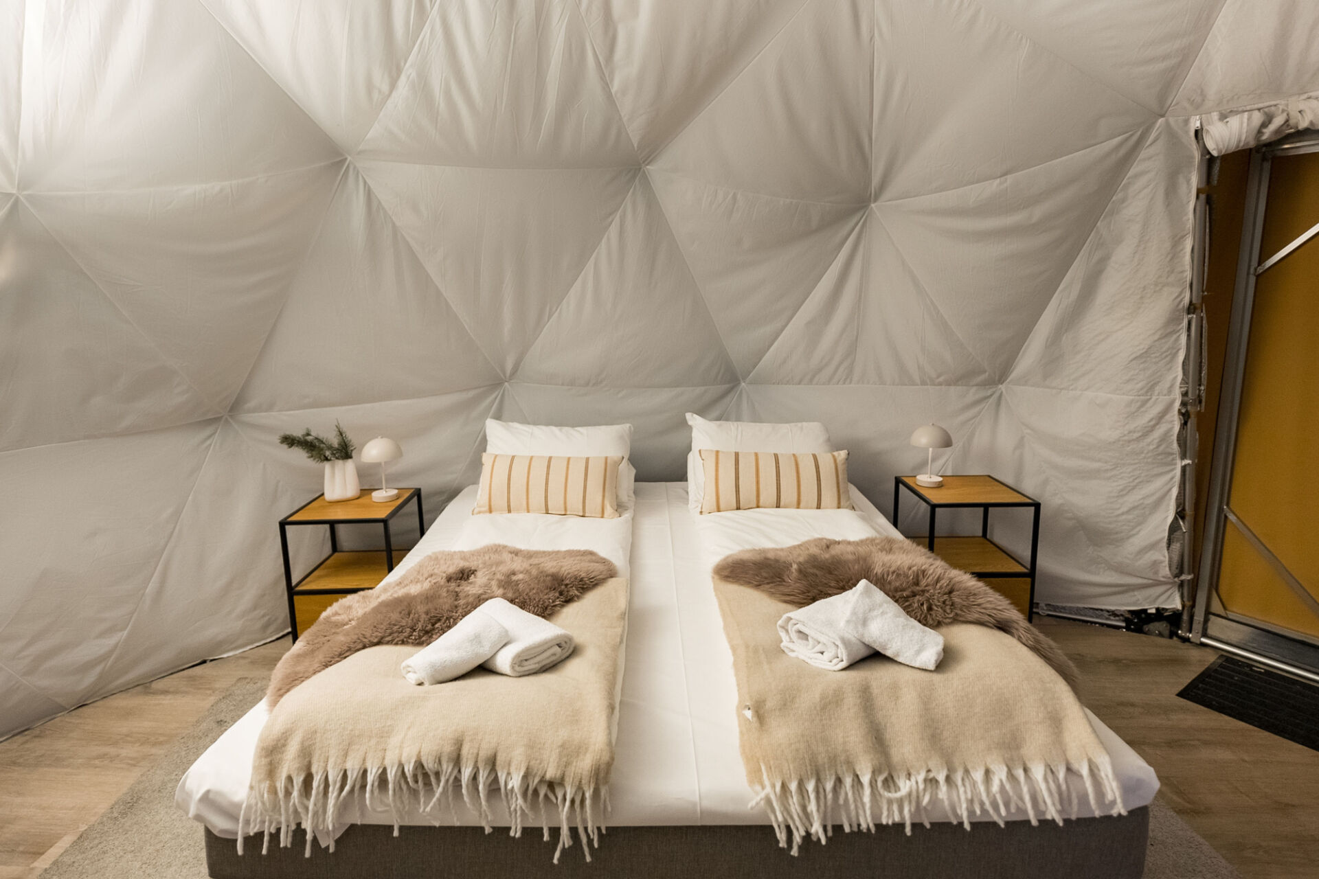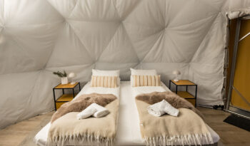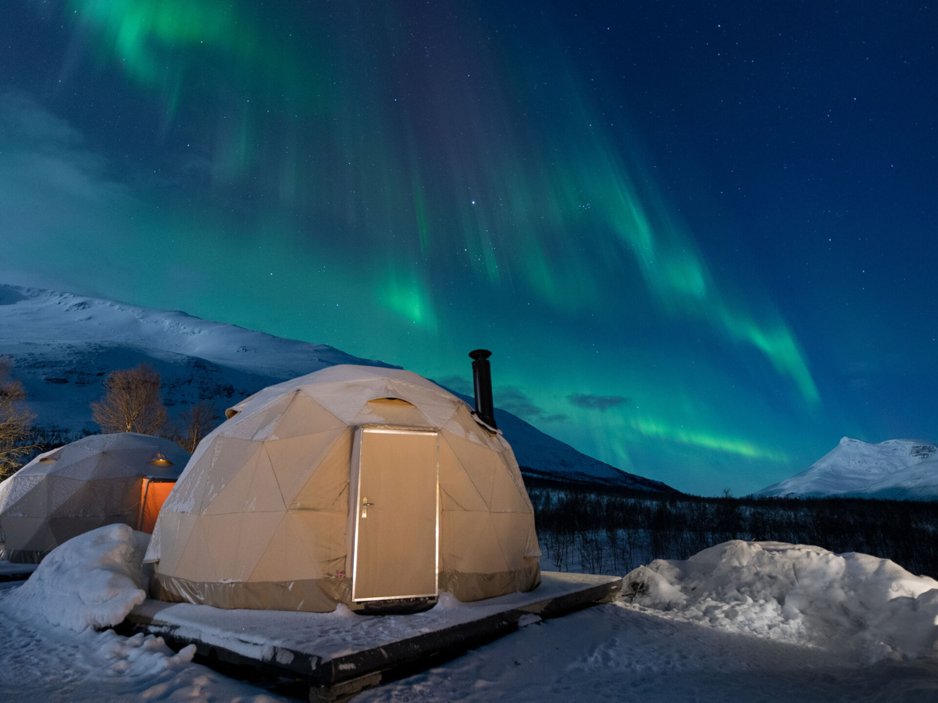 After your evening activity, you will return to the camp and enjoy a warm meal in one of our traditional lavvus (indigenous Sámi tent). After the meal, around 22:30 you can check-in to your accommodation for the evening (chosen upon booking): Arctic glamping, the chalet or the char cabin.