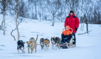 Depending on your choice of activity (upon booking) you will head out on a dog sledding, snowmobiling or reindeer sledding tour, followed by the time to relax and warm up with a hot meal in one of our lavvus (indigenous Sámi tent). After the daytime activity, most people will return to Tromsø by bus. Since you have chosen to stay a full day at the camp (combining a daytime activity and evening activity), we have made it possible for you to stay at Camp Tamok in between activities.