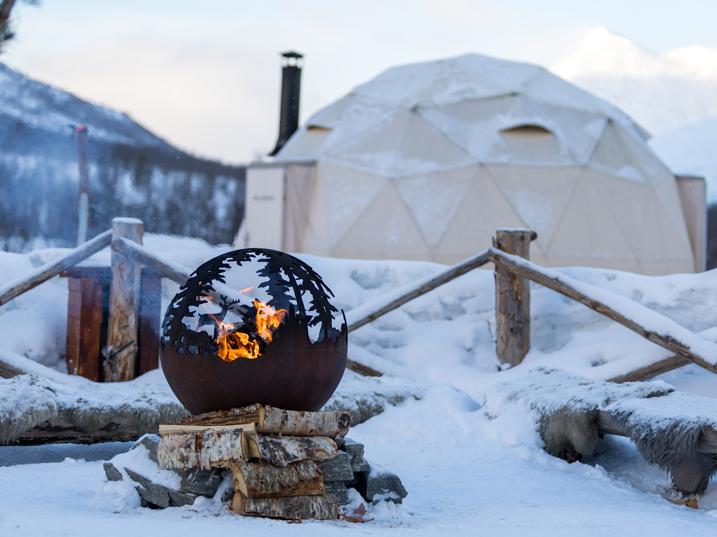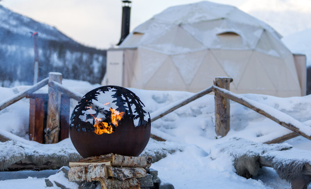 After spending the night in the Arctic wilderness, we will start the following day with a traditional Norwegian breakfast, followed by your daytime activity (chosen upon booking): head out on an exciting dog sledding or snowmobile tour, join the reindeer sledding and Sami experience or join us for to Tromsø Ice Domes Snow Park and combine a visit to the park with the snow carving activity!
