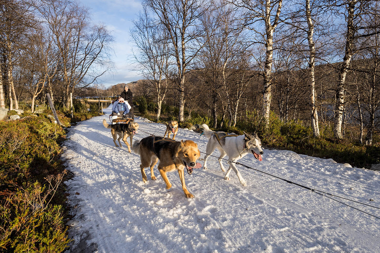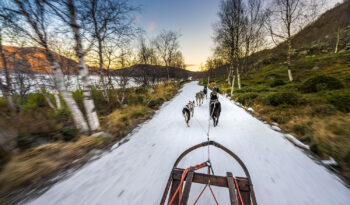 Your experience begins with an optional pickup from your hotel in Kirkenes, followed by a 15-minute drive to the Snowhotel. Upon arrival, you are welcomed at the dog yard by one of our guides, and outfitted with the essential gear - including thermal suits, boots, and gloves - ensuring comfort and warmth for the adventure ahead. Each sled is steered by an experienced musher, and you sit in pairs as passengers, allowing you to fully enjoy the scenery and experience. The tour follows our man-made snow trail, built specifically for this experience using snow saved from last year. The early-bird track covers approx. 6 kilometers and follows a scenic route along the fjord. A short stop is included midway, giving some time to rest the dogs and hear stories from the trail. After the sledding tour, upon return to the Snowhotel, your driver is ready to take you back to your hotel in Kirkenes.