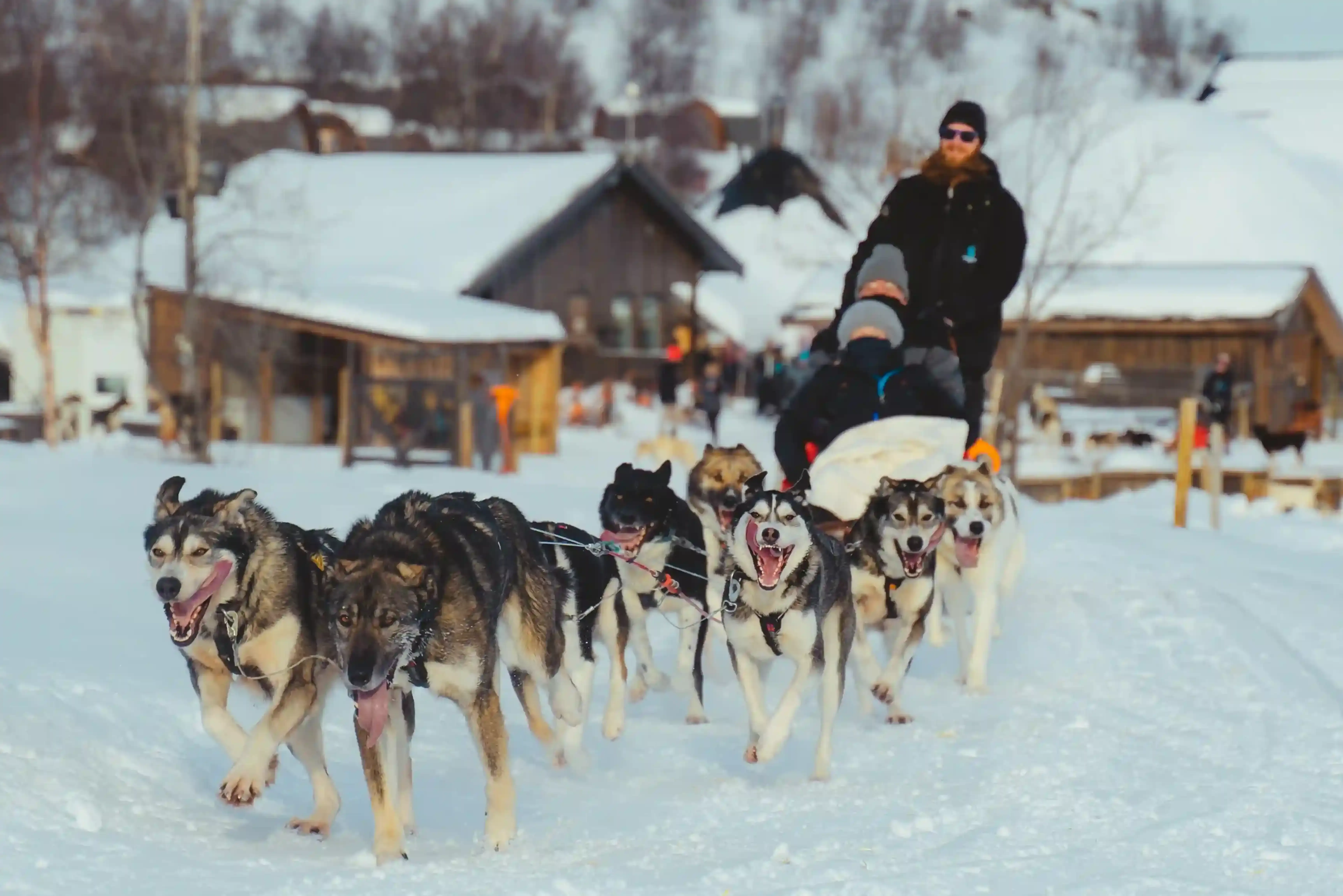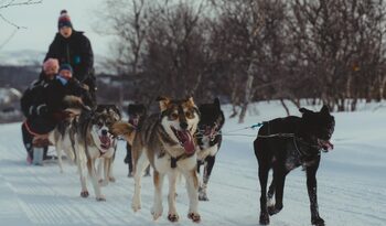 Your experience begins with an optional pickup from your hotel in Kirkenes, followed by a 15-minute drive to the Snowhotel. Upon arrival, you are welcomed at the dog yard by one of our guides, and outfitted with the essential gear - including thermal suits, boots, and gloves - ensuring comfort and warmth for the adventure ahead. Each sled is steered by an experienced musher, and you sit in pairs as passengers, allowing you to fully enjoy the scenery and experience. The tour covers approximately 6 kilometers and follows a scenic route along the classic lightly forested wilderness of Arctic Norway. A short stop is included midway, giving some time to rest the dogs and hear stories from the trail. After the sledding tour, upon return to the Snowhotel, your driver is ready to take you back to your hotel in Kirkenes.