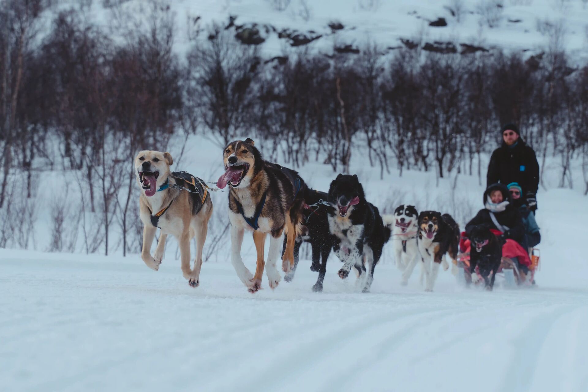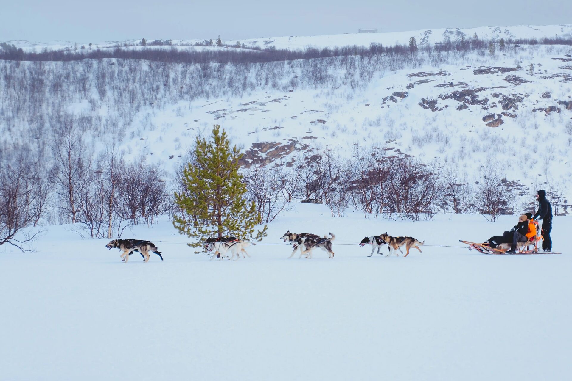 Upon arrival, you are welcomed at the dog yard by one of our guides, and outfitted with the essential gear - including thermal suits, boots, and gloves - ensuring comfort and warmth for the adventure ahead. Each sled is steered by an experienced musher, and you sit in pairs as passengers, allowing you to fully enjoy the scenery and experience. The tour is approximately 10 km and follows a scenic route along the classic lightly forested wilderness of Arctic Norway.