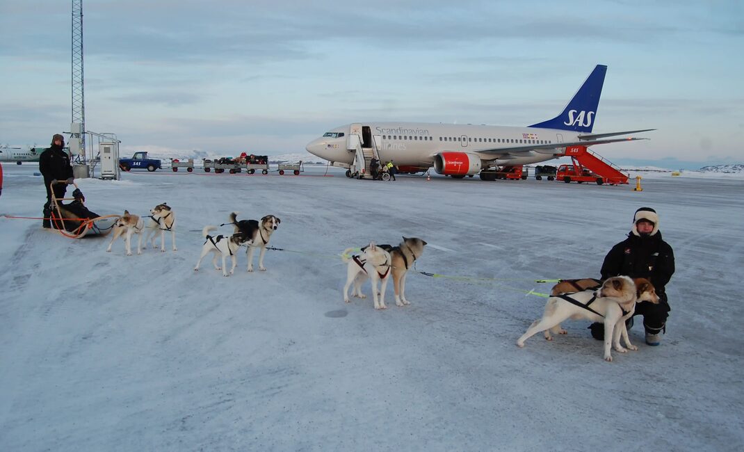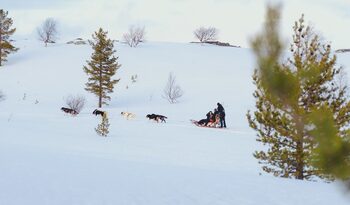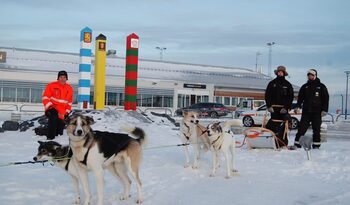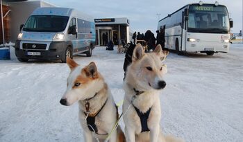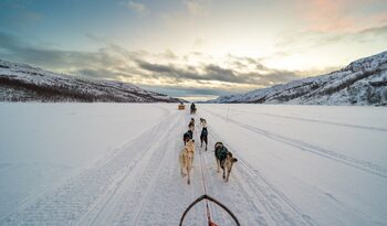 Upon landing at Kirkenes Airport, you will meet your professional musher and a team of eager huskies right outside the arrival lobby, ready to take you on an adventurous journey towards your overnight stay at the Snow Resort!