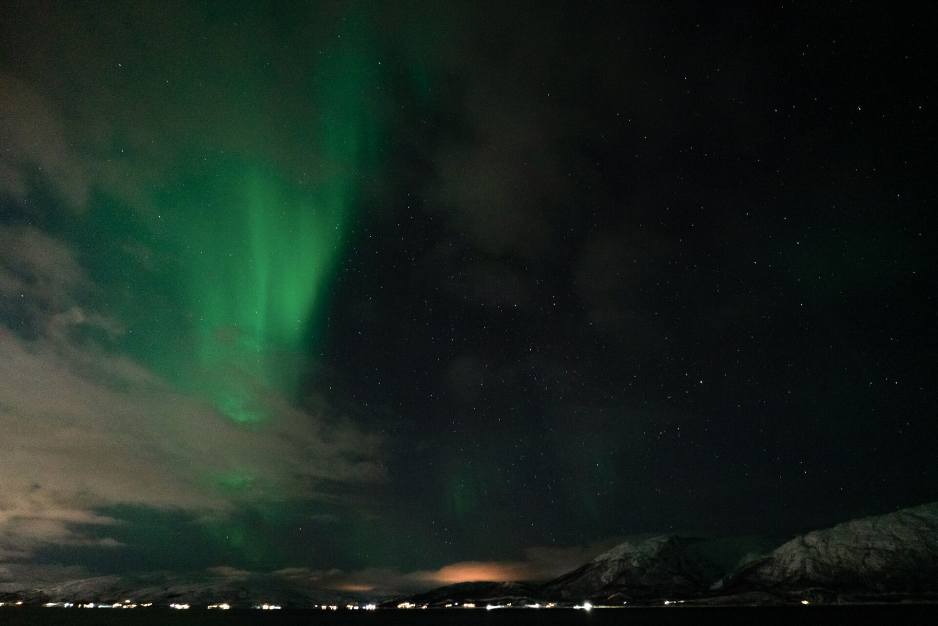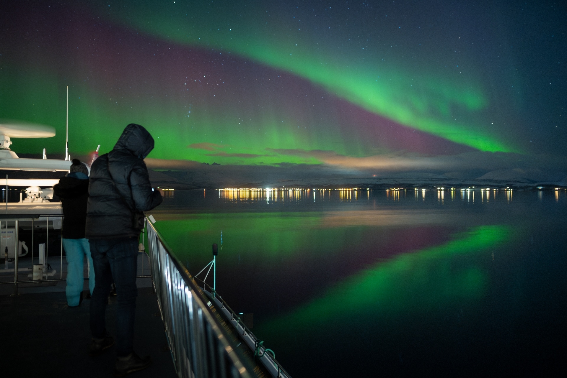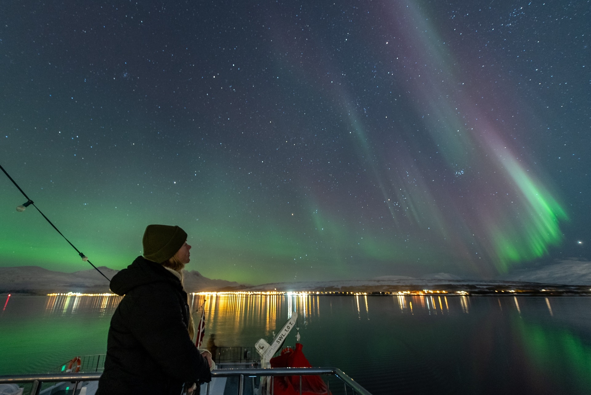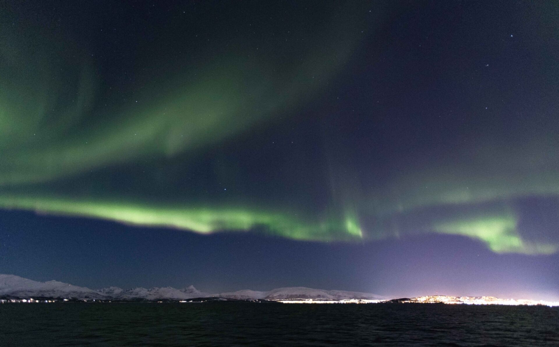 Tromsø is the perfect place to chase your dream of seeing the Northern Lights. Our comfortable boat is the perfect viewing platform! Our spacious and environmentally friendly catamaran MS Rygerdronningen is also high-speed. That means we can cruise away from the city lights to ideal viewing conditions near Tromsø. Our guide will tell you about this unique natural phenomenon and even offer tips for photographing it.