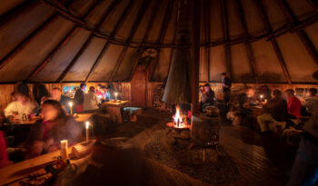 Ensuring you stay warm and comfortable, we will serve a hot meal around the open fire inside one of the lávvu (indigenous Sámi tent).