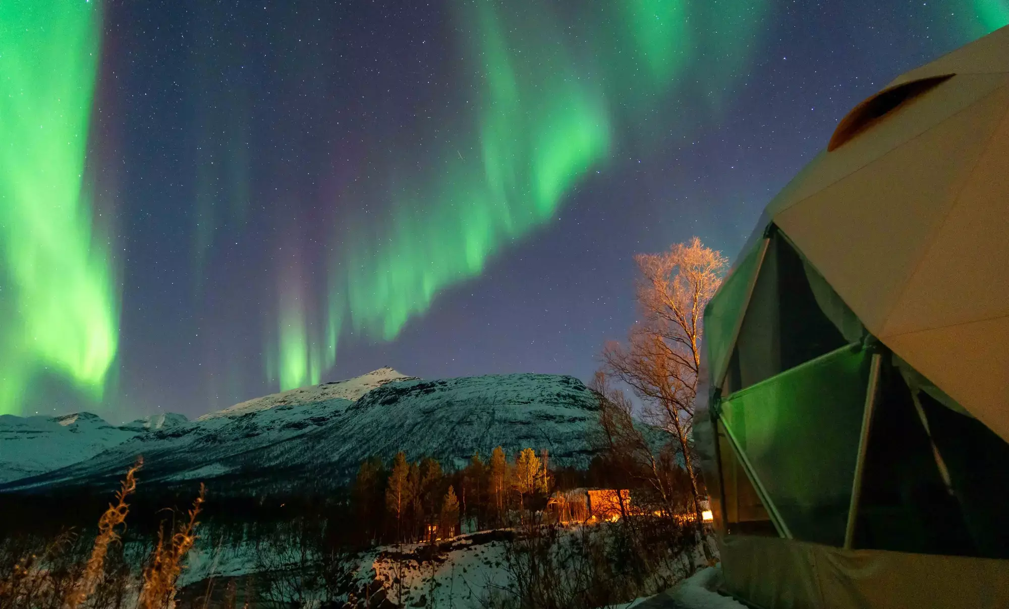 After your evening activity, you will return to the camp and enjoy a warm meal in one of our traditional lavvus (indigenous Sámi tent). After the meal, around 22:30 you can check-in to your accommodation for the evening (chosen upon booking): Arctic Glamping, the chalet or the char cabin.