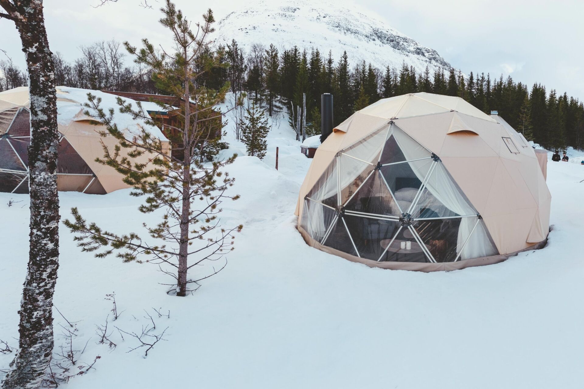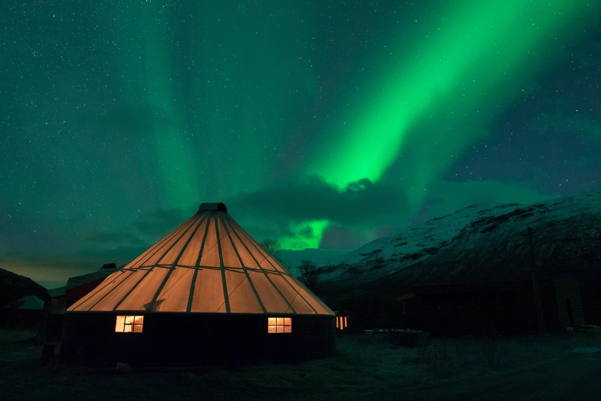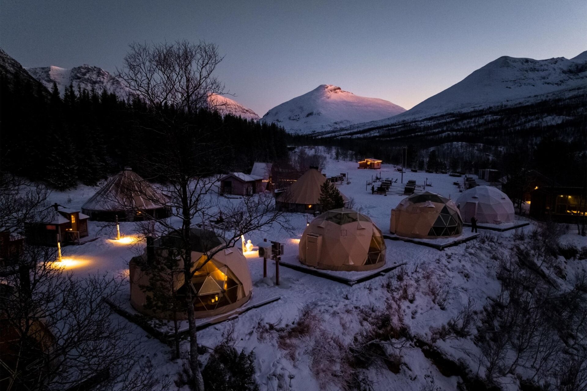Your Cabin Overnight adventure begins with a 1,5-hour bus ride from Tromsø to the remote Tamok valley. Our camp has been exclusively built as wilderness camp for Lyngsfjord Adventure, presenting a fair balance between authenticity and comfort. It exists of traditional and rustic Northern Norwegian buildings: several lavvus, timber cabins and Arctic Glamping tents, complemented with toilet facilities, a husky kennel and reindeer camp.
