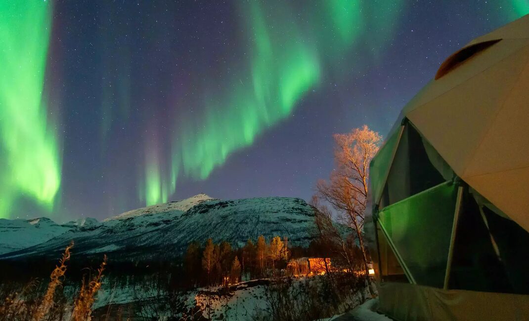 After spending the night in the Arctic wilderness, we will start the following day with a traditional Norwegian breakfast, followed by your daytime activity (chosen upon booking): head out on an exciting dog sledding or snowmobile tour, join the reindeer sledding and Sami experience or join us for to Tromsø Ice Domes Snow Park and combine a visit to the park with the snow carving activity!