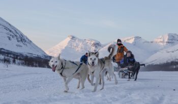 Your Cabin Overnight adventure will begin with a 1,5-hour bus ride from Tromsø to the remote Tamok valley. Our camp been exclusively built as wilderness camp for Lyngsfjord Adventure, presenting a fair balance between authenticity and comfort. It exists of traditional and rustic Northern Norwegian buildings: several lavvus, timber cabins and Arctic glamping tents, complemented with toilet facilities, a husky kennel and reindeer camp.