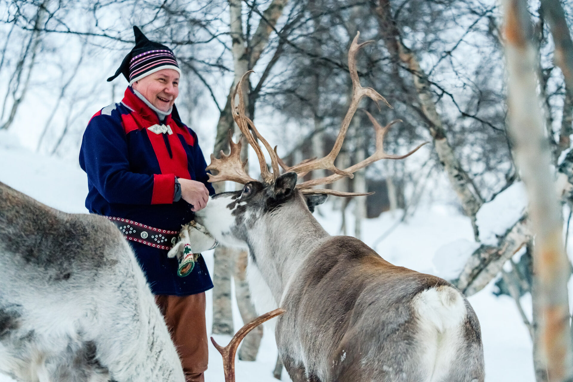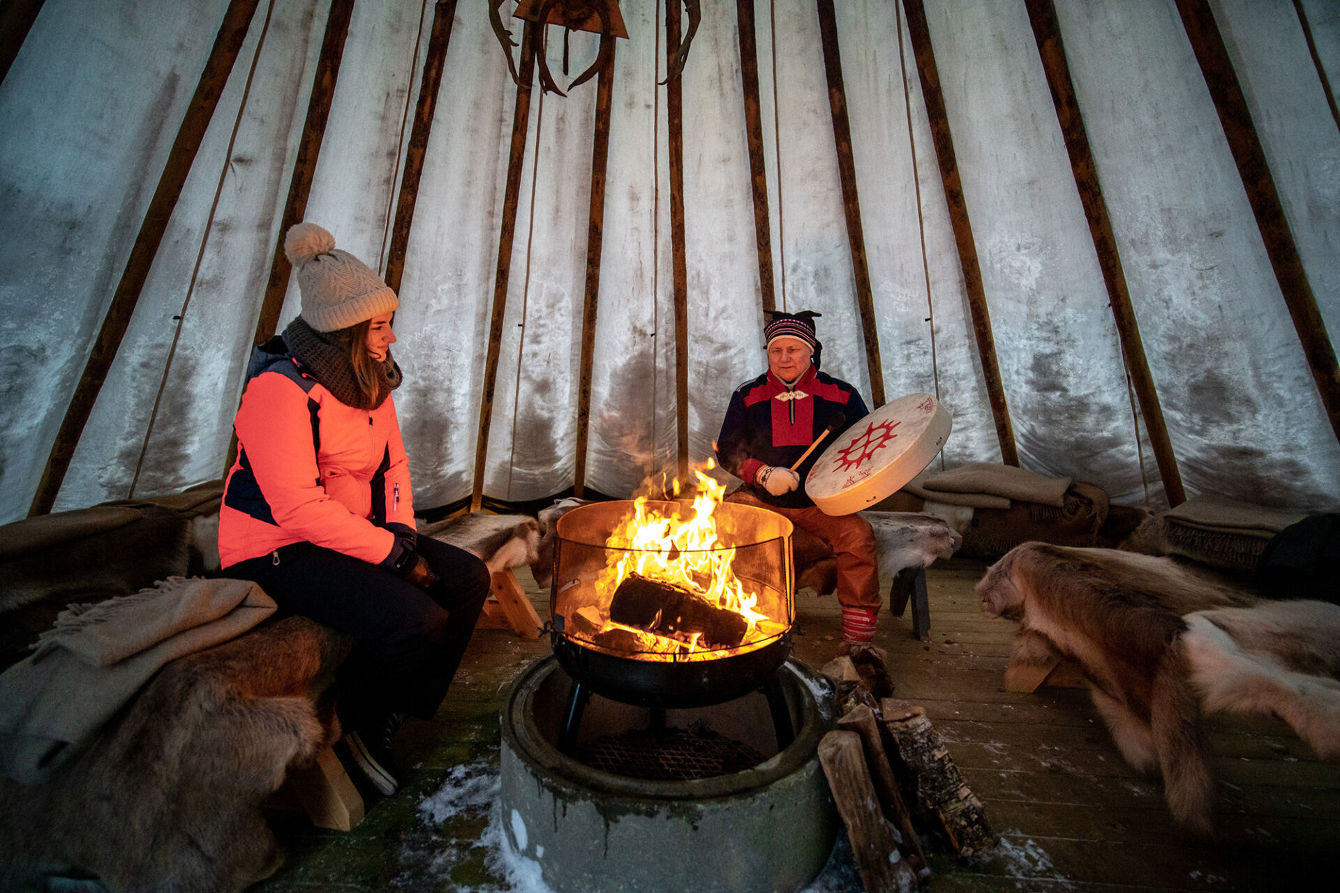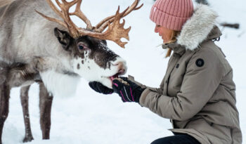 You will arrive by your own transport and meet your guide at the reception. The experience begins inside the reindeer pen, where you can feed the reindeer by hand with their favorite food, lichen. As you meet these majestic animals, your guide will share fascinating facts about reindeer herding and Sámi life.The tour continues to a traditional lavvu. On the way, you will have the chance to try lasso casting, a classic Sámi skill used for herding reindeer. Inside the lavvu, you will sit around the campfire while your guide shares stories from Sámi folklore and traditions. The experience ends with a performance of joik, the unique and soulful Sami style of singing.