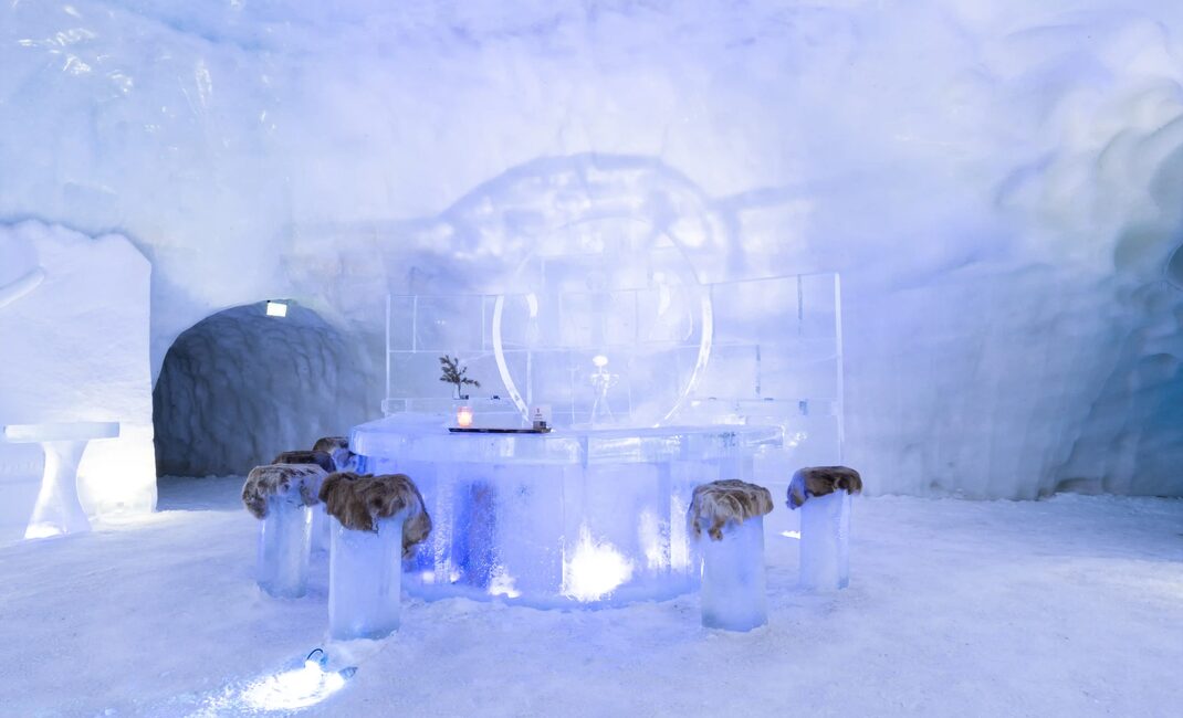 Your evening begins at the reception where a friendly guide/waiter will accompany you for a guided tour of the Snowhotel. You’ll learn about its fascinating ice and snow art and construction process while enjoying a non-alcoholic welcome drink at the ice bar. You’ll even hear about what it’s like to spend a magical night surrounded by snow! After exploring, you can relax in the warm and inviting Låven restaurant for a 3-course Arctic dinner, featuring seasonal local ingredients. After dinner, you can enjoy a final drink in the ice bar inside the Snowhotel.
