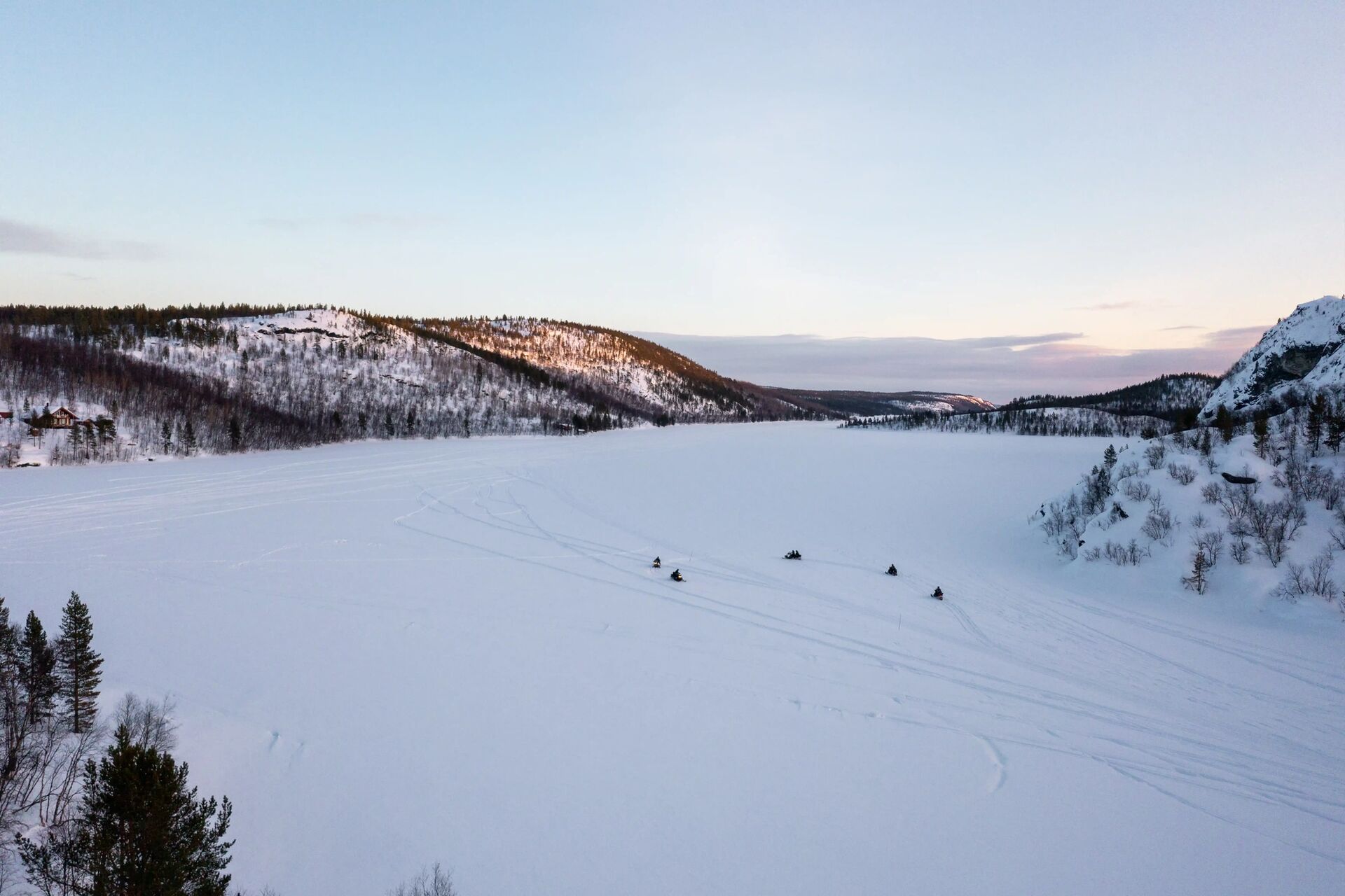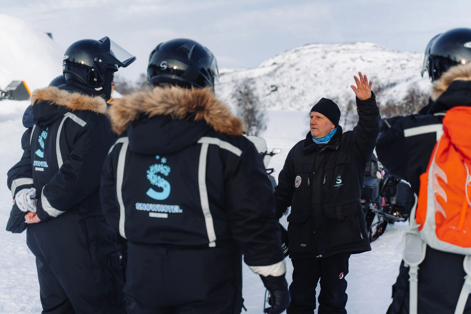 Your tour starts with either a pickup from your hotel in Kirkenes, or meeting up at the Snowhotel reception. Your guide will show you to the dressing room, where warm gear is provided. Before departure, you will receive a full safety briefing and a hands-on training sessionon how to drive a snowmobile, making sure everyone feels confident. Even if you have never driven a snowmobile before, you will be taught everything you need to know.