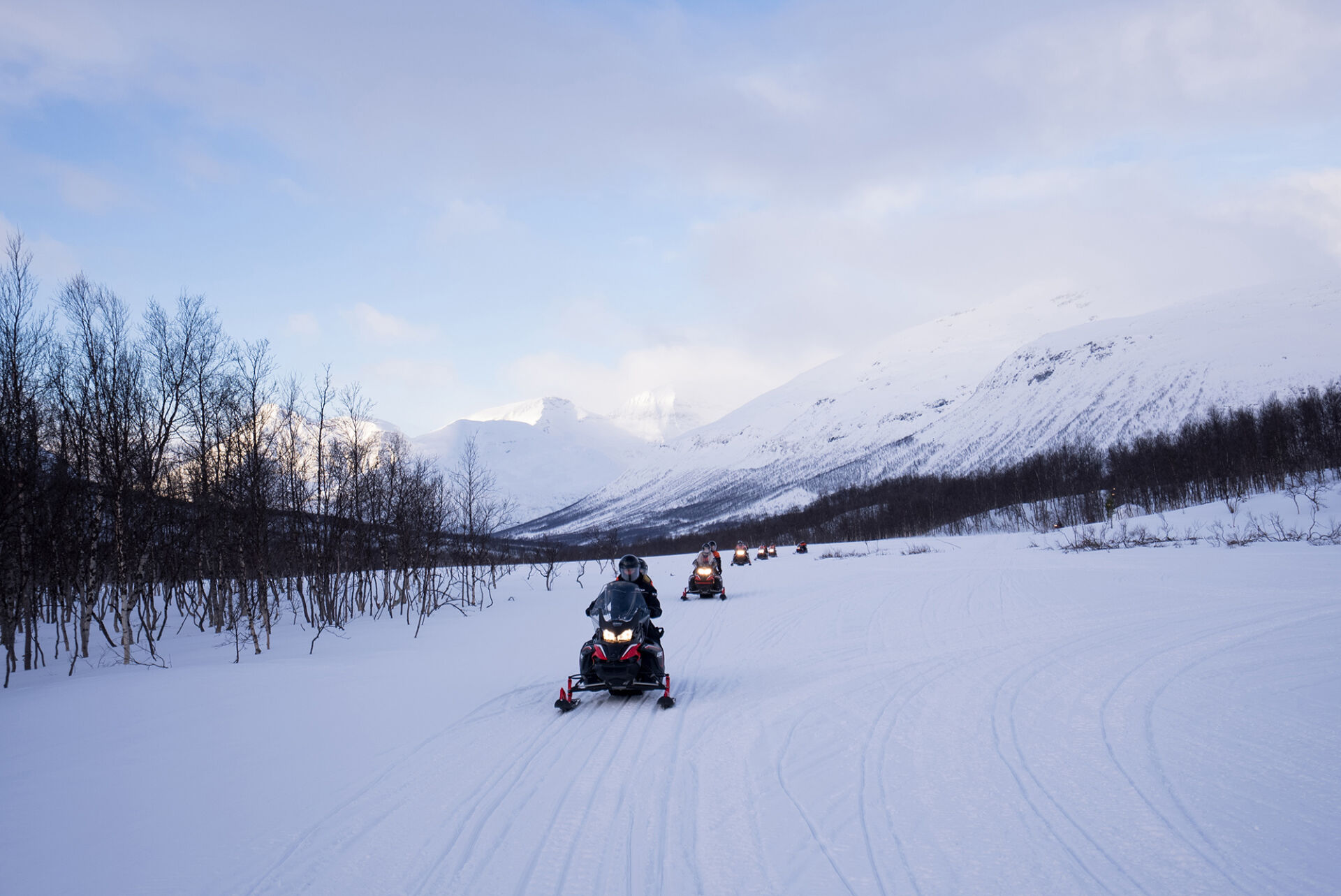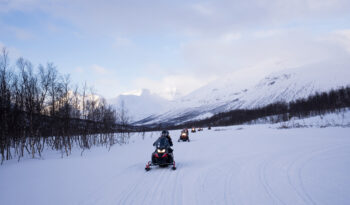 You will share a snowmobile with another person, taking turns as the driver and passenger. Halfway through the tour, we’ll have a short break where you’ll swap places, ensuring both of you have the chance to drive the snowmobile.