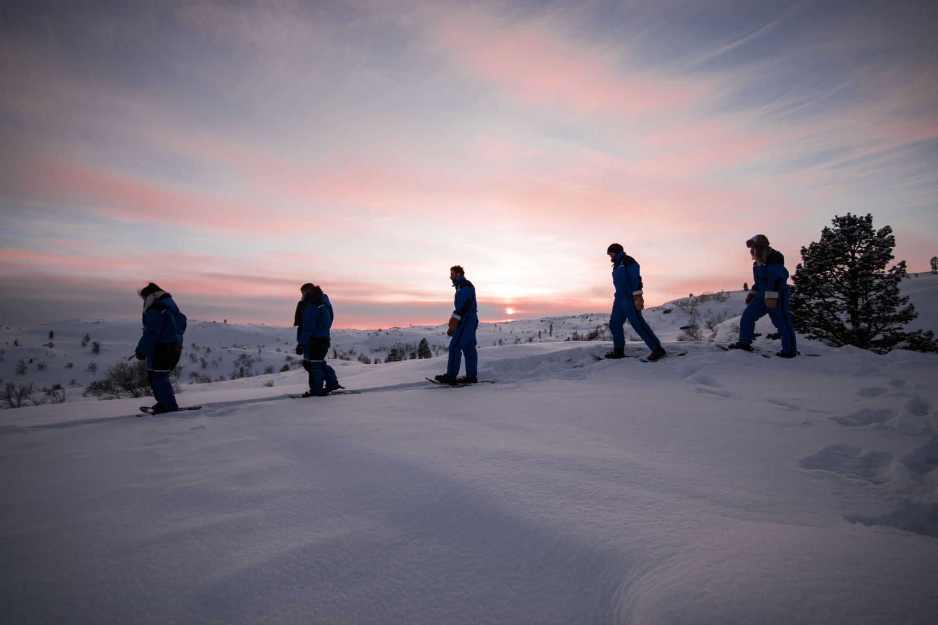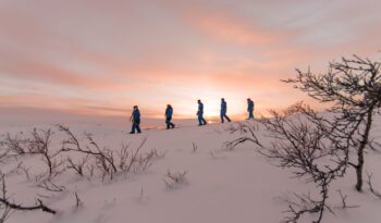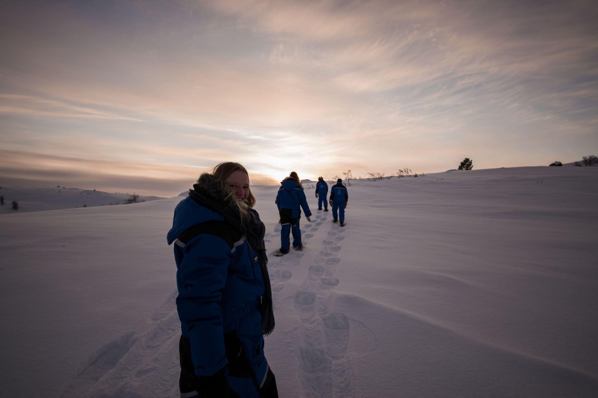 On this excursion, we will traverse up into the mountain ranges overlying the Snowhotel, walking through different types of snow.
