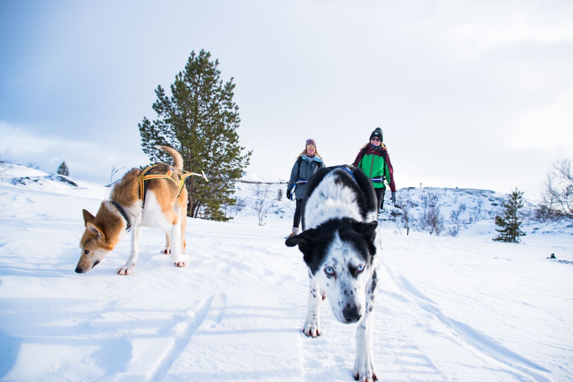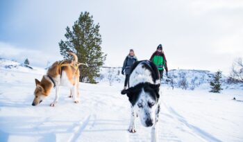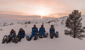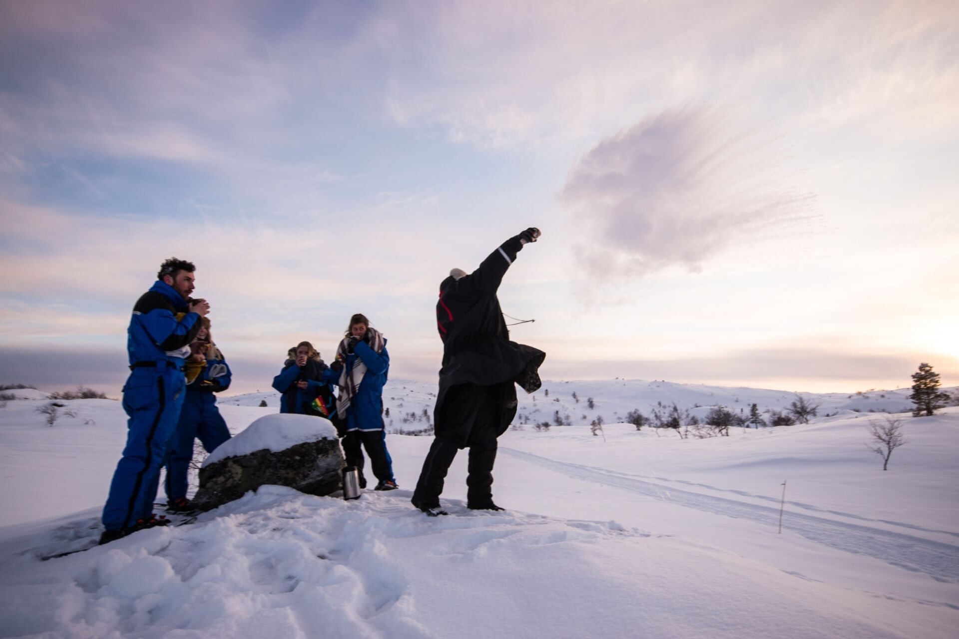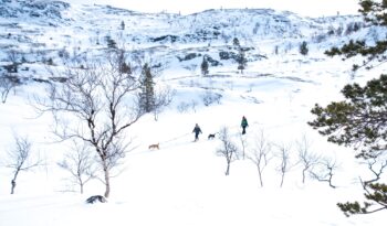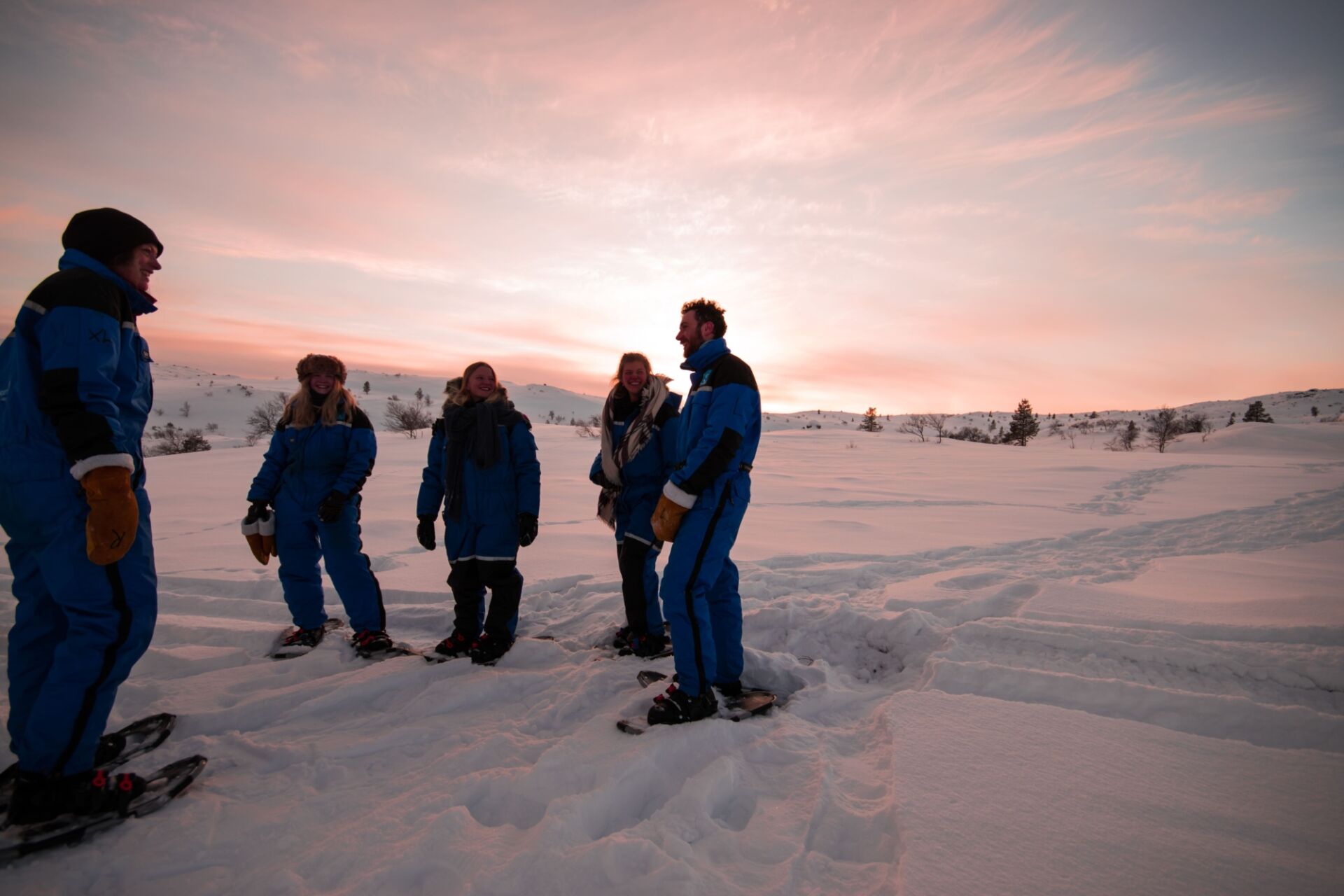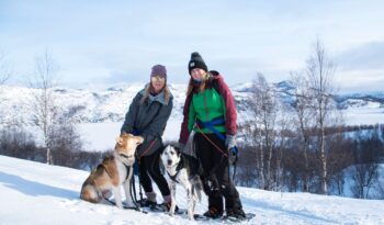 The journey goes first along the fjord, and then up the snowy hillside, which is not too steep. At the summit of the mountain, there will be time for a break, where you will get the chance to take in the magnificent view of the Sandnes mountain plateau and down to Langfjorden, the arctic fjord by the Snowhotel.