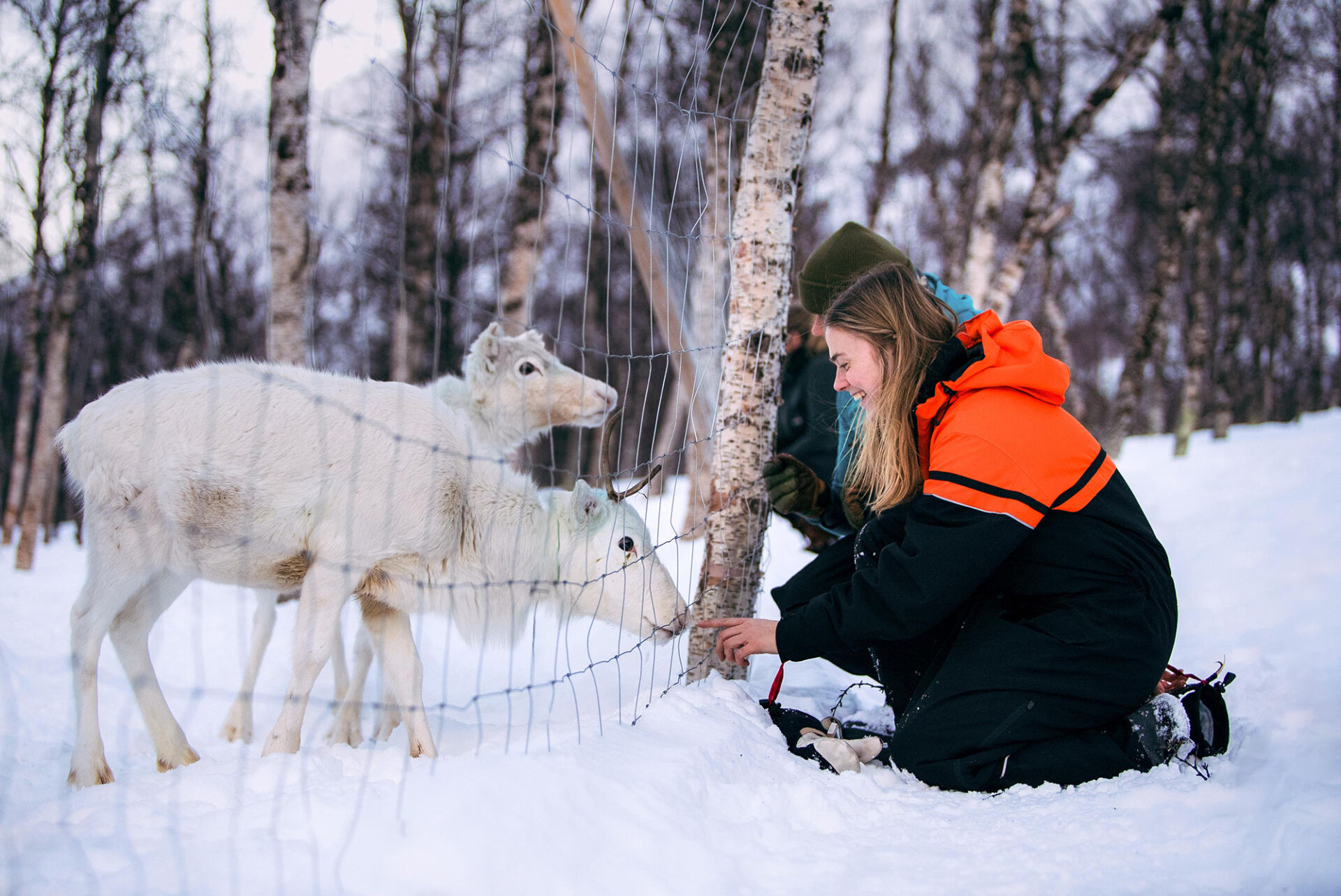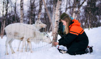 Enter the park and discover the magic of the snow and ice sculptures. Wander around by yourself through a mesmerising display of snow and ice sculptures, and explore our two domes. Marvel at the amazing art coming to life with light in its natural surroundings of pristine nature and peaceful Arctic landscapes. Get close to the two most iconic animals of Northern Norway: cuddle and take photos with our huskies and go visit the reindeers near the park.