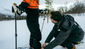 The snowshoe hike offers a unique opportunity to explore the serene winter landscapes at slow pace. As you make your way through the snow, your guide will share fascinating insights about the Arctic environment and teach you some good ice-cold wilderness survival skills: how to sleep outdoors, what to eat and how to orientate yourself. Midway through the hike, we’ll pause at a nature camp where your guide will teach you how to chop wood and start a fire, on which you then will cook a delicious lunch.