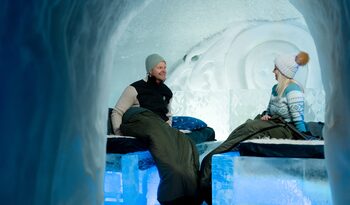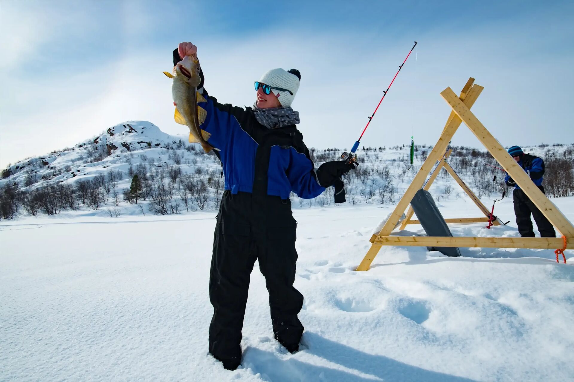 Begin your escape with a transfer from your hotel in Kirkenes, the harbour, or the airport to the Snowhotel Resort. Meet up at the reception for your first adventure: ice fishing at 13:00. Drill your own hole in the frozen lake, drop your line, and enjoy the quiet serenity of the snow-covered landscape. The afternoon is yours to explore the resort, visit the reindeer and huskies, or relax in the sauna. At 18:30, gather at Restaurant Låven for a three-course Arctic dinner, crafted from seasonal local ingredients. Guests spending their first night in a snow suite will also receive a sleeping bag tutorial, ensuring a comfortable stay inside the icy Snowhotel.