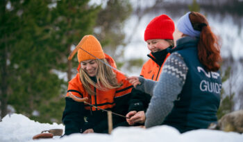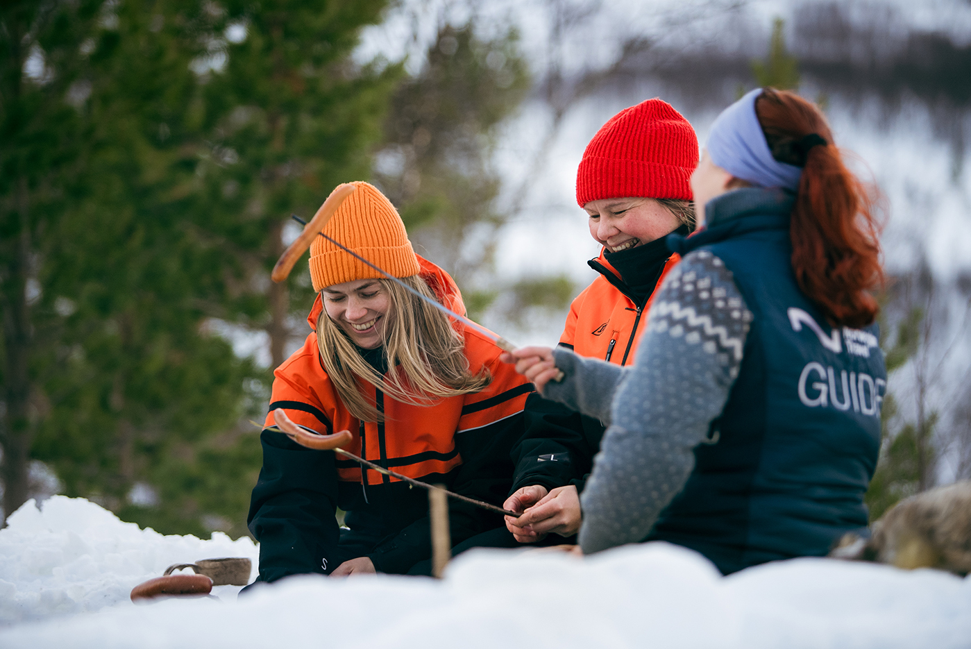 Join us on a 1.5 hour bus ride from the city center of Tromsø to the remote Tamok valley. Upon arrival at the camp, you will get geared up in warm winter clothes and boots, ensuring you stay warm and comfortable throughout your stay at the camp. Our camp host will guide you through the day's program.