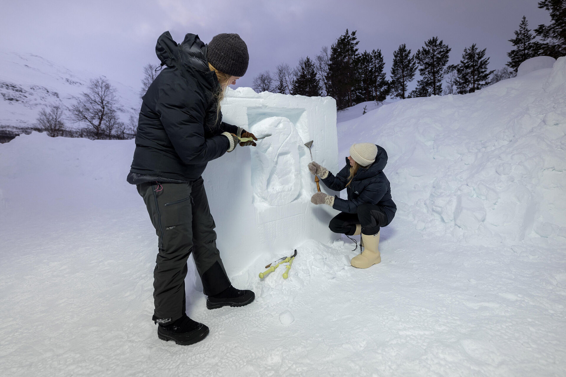 To conclude this activity, you will get the unique chance of using your creative skills in shaping your own snow sculpture. With the guidance of an experienced instructor and divided in small groups, you can pick up your own carving tools and start sculpting your own masterpiece out of a large block of compressed and hard snow.