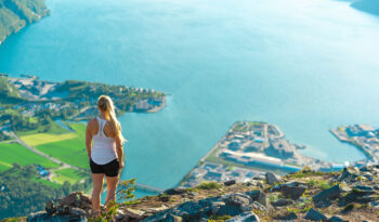 På denne guidede turen møter guiden deg ved den nedre gondolstasjonen. Sammen tar dere turen 708 meter opp til toppen av Nesaksla-fjellet med Romsdalsgondolen. Den korte fem-minutters turen fra Åndalsnes sentrum til fjelltoppen åpenbarer den fantastiske utsikten over Romsdalens majestetiske fjorder og omkringliggende fjelltopper. Ved ankomst til toppen leder guiden deg på en avslappende fottur langs preparerte grusstier. Mens du vandrer gjennom noen av Norges villeste fjellandskap, vil du få innsikt i regionens rike historie og kultur.