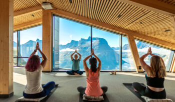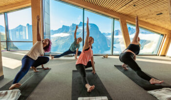 En lokal yogainstruktør vil møte deg ved den nedre stasjonen til Romsdalsgondolen og sammen tar dere den 7 minutter lange gondolturen til toppen av Nesaksla og Eggen Restaurant, 708 meter over havet. Du får tid til å se deg rundt og finne roen før yogaklassen begynner.